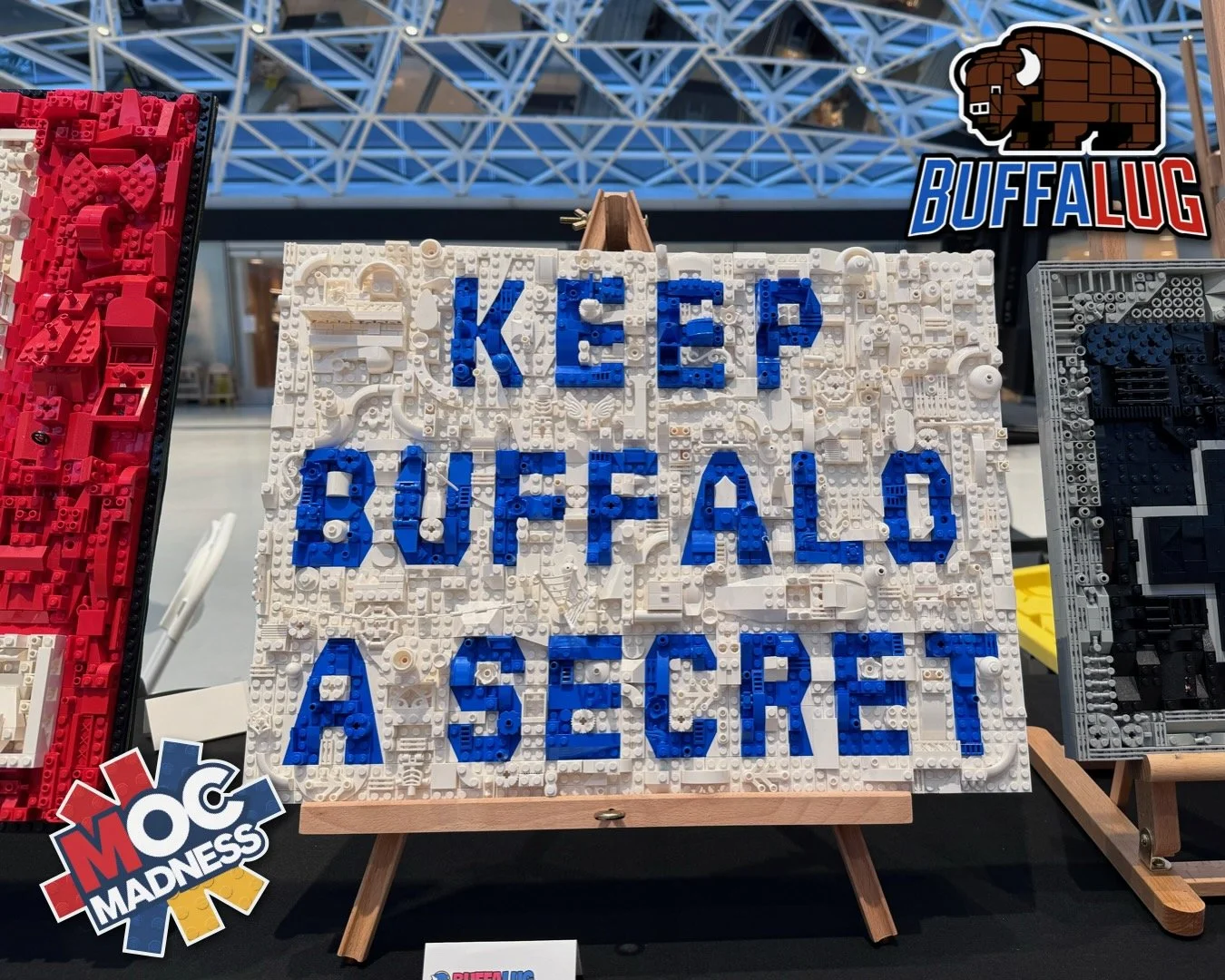 Jon Breidert’s Keep Buffalo A Secret Mural – A LEGO recreation of Buffalo’s famous mural, Jon greebled this together the night before BuffaLUG’s first Block Party to add a hometown touch. The texture-packed lettering brings the bold message to life.